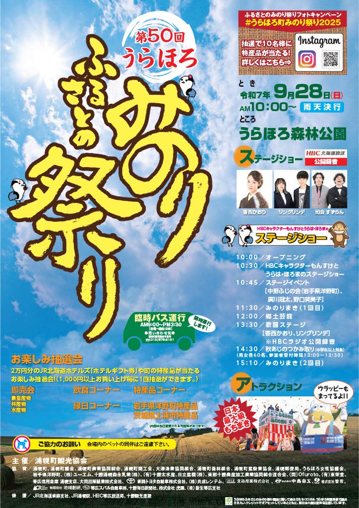 令和7年9月28日(日曜日)午前10時より、うらほろ森林公園で「第50回うらほろふるさとのみのり祭り」を開催します!