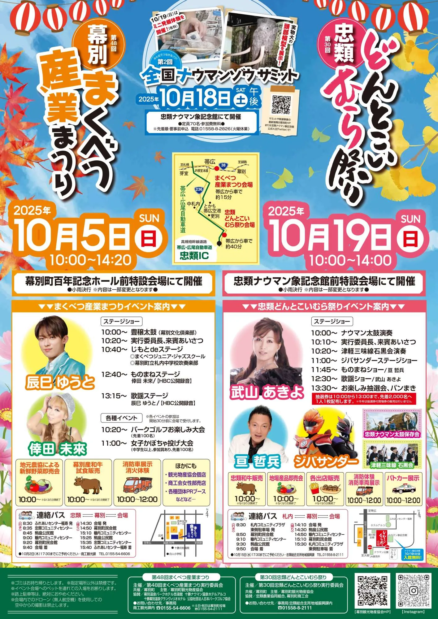 《ステージ》 午前10時00分~ナウマン太鼓演奏 午前10時10分~実行委員長、来賓あいさつ 午前10時20分~津軽三味線石黒会演奏 午前11時00分~ジバサンダーステージショー 午前11時45分~ものまねショー(亘 哲 […]